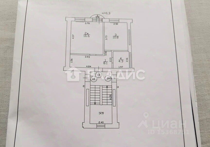 Общая площадь квартиры: 39.8 кв.м, площадь комнаты 16.6 кв. м, площадь кухни 10.8 кв.м, совмещённый санузел, французский балкончик.