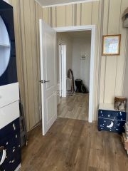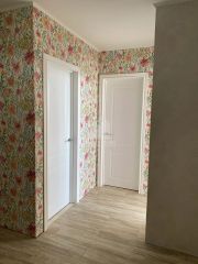В квартире остаётся холодильник, варочная поверхность, шкафы в двух комнатах, диван угловой. В данный момент обновляются обои в одной их спален.
