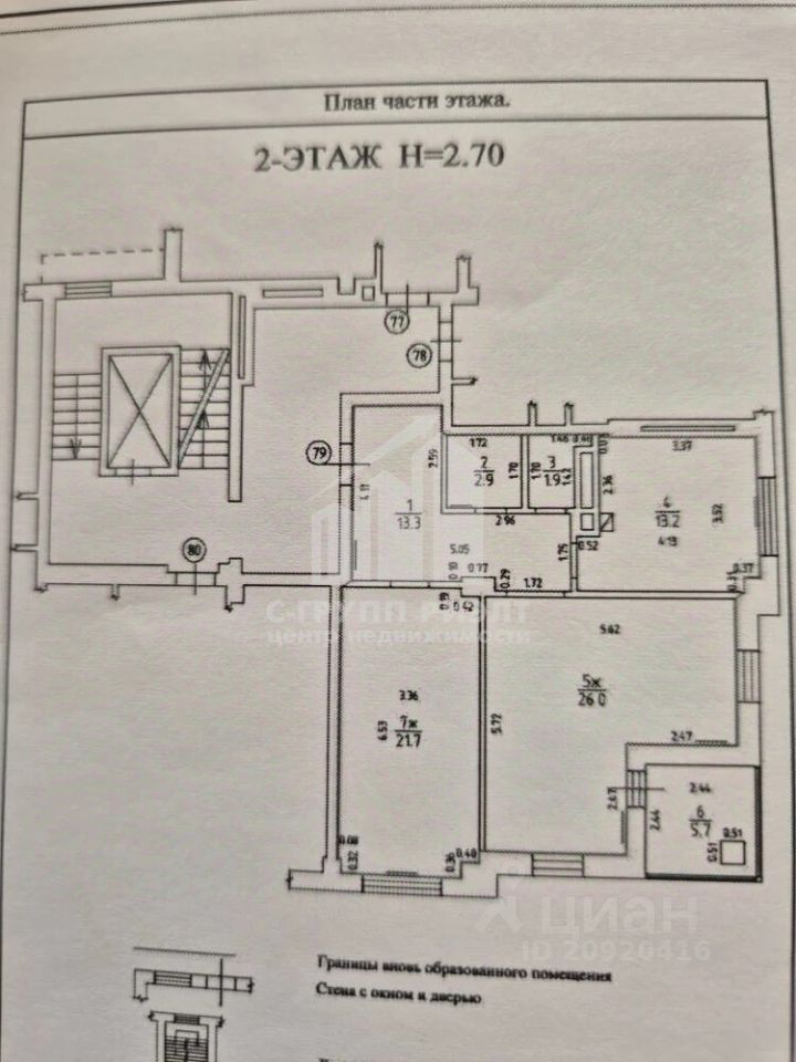 Две изолированные комнаты с окнами на улицу имеют площадь 26 кв. м. и 21,7 кв. м.