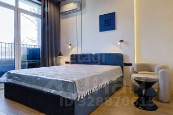 Общая площадь 42.3 м.кв., дизайнерский ремонт, все продумано до мелочей, теплый пол по всей квартире, сантехника и техника премиальных фирм, квартира оснащена всей необходимой бытовой техникой, панорамные окна в пол, кондиционер, высота потолка 3 метра.