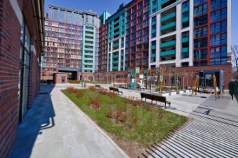 Большая благоустроенная придомовая территория с элементами ландшафтного дизайна, зоны отдыха для взрослых, беговая и вело дорожки, детская игровая и спортивная площадки для любого возраста. Предусмотрена большая и удобная наземная и подземная парковка для автомобилей.