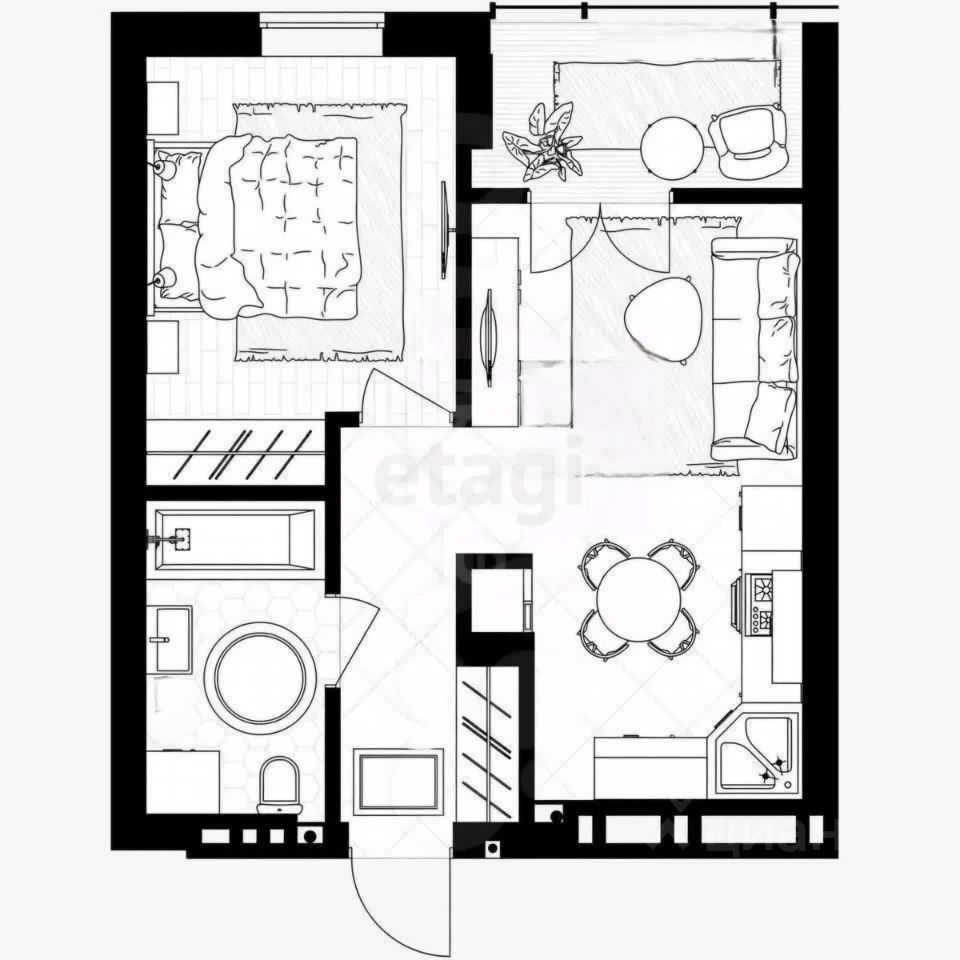 спальня 12,7 м2 с нишей под шкаф или более приватную спальную зону,
