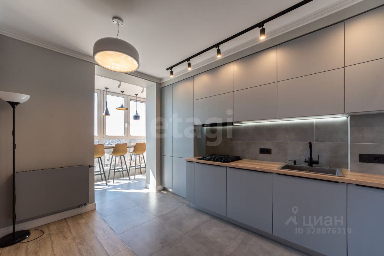 Кухня-гостиная: 20 м², оборудована всей необходимой мебелью и техникой.