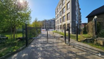 Прилегающая к дому территория огорожена и благоустроена, организовано видеонаблюдение. Оборудованы детские игровые и спортивные площадки. Имеется достаточное количество парковочных мест.