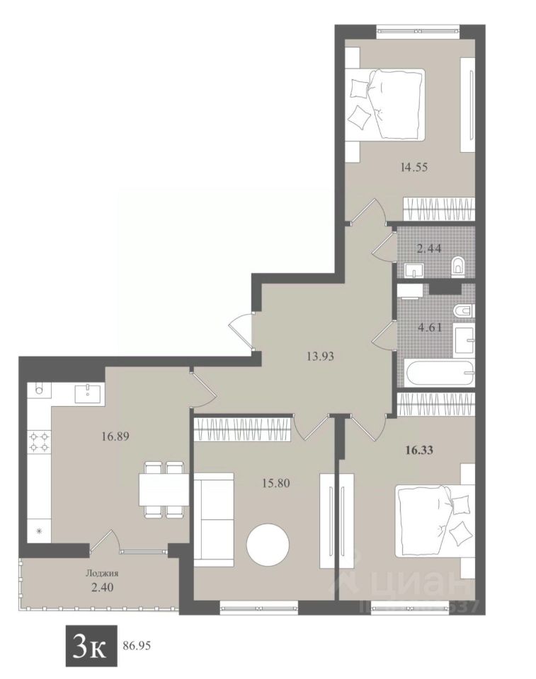 Простор: Несколько спален и большая гостиная (или объединенная кухня-гостиная) создают ощущение свободы и уюта. Комнаты спроектированы так, чтобы обеспечить максимальную функциональность и комфорт для каждого члена семьи.