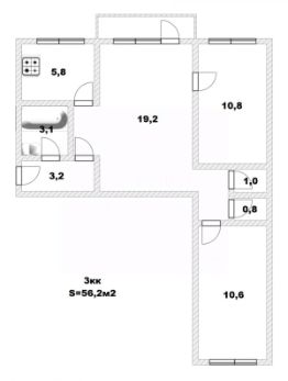 - 3 смежноизолированные комнаты (10,3 кв.м + 10,6 кв.м + 19,2 кв.м)