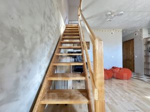 Двухуровневая планировка - на 1 этаже кухня-гостиная, совмещенный с/узел, на 2 этаже - спальная с большой нишей, которую можно использовать под гардеробную или рабочую зону. Высота потолка 2,5; 2,6 м.