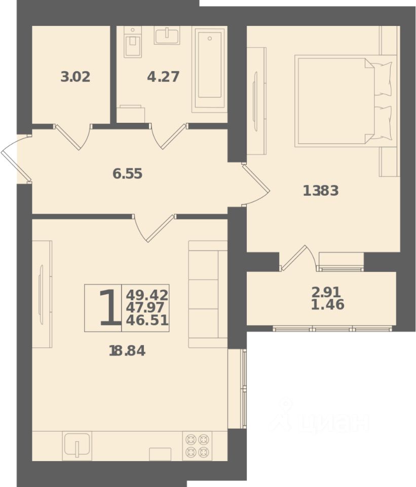 Общая площадь49,42 м²