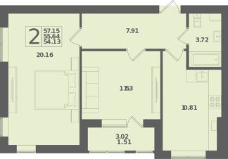 Общая площадь57,15 м²