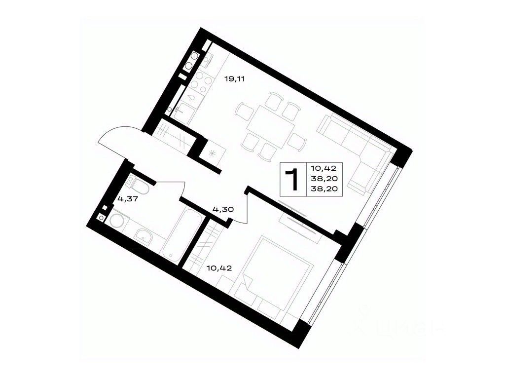 Общая площадь38,2 м²