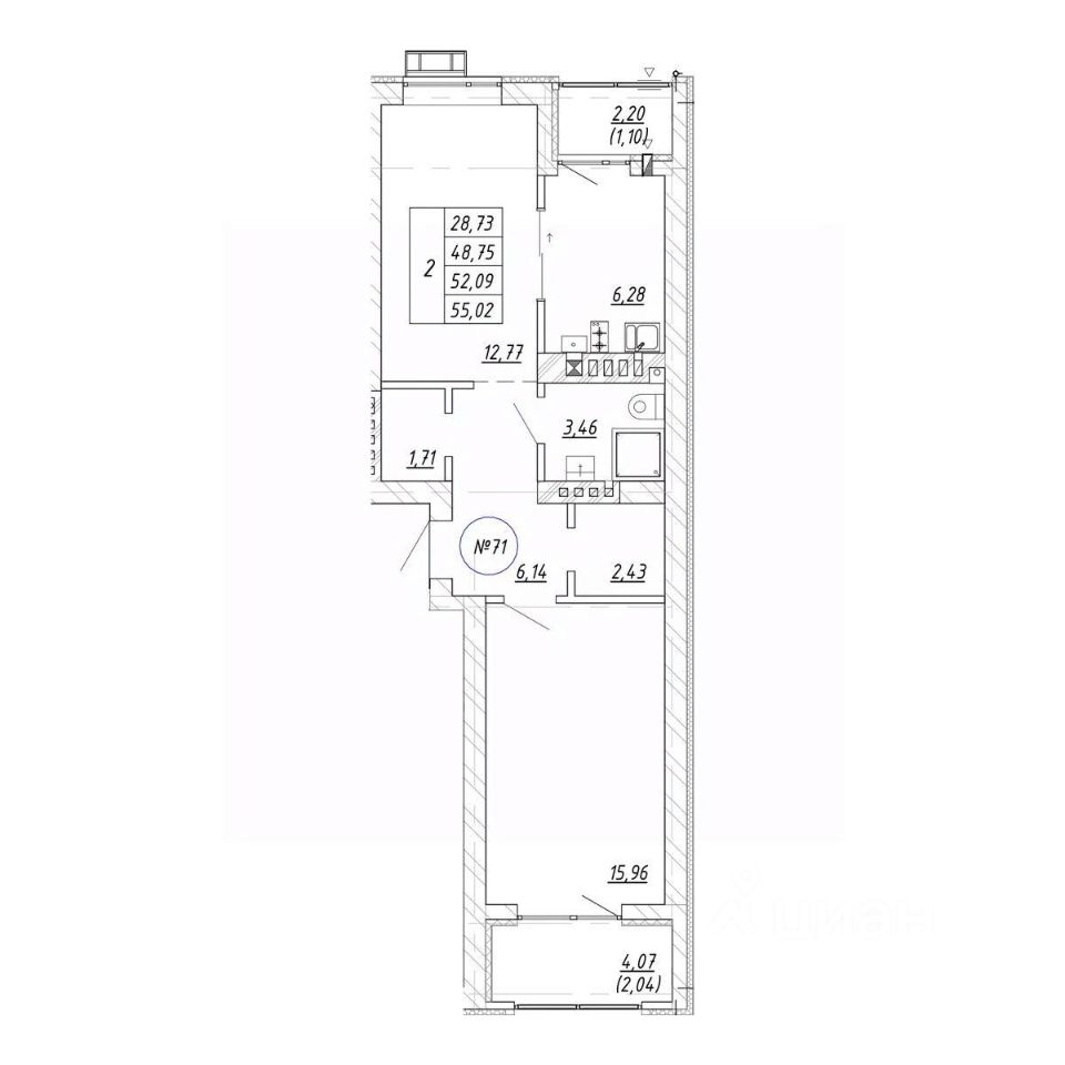 Продаётся 2-комнатная квартира в строящемся доме (Дом 24.1), срок сдачи: I-кв. 2029, общей площадью 55.02 кв.м., на 4 этаже. Новый жилой комплекс "Яркий" от застройщика "СтройИнвестиция" расположен по адресу: Калининградская обл., г. Зеленоградск, ул. Центральная улица.