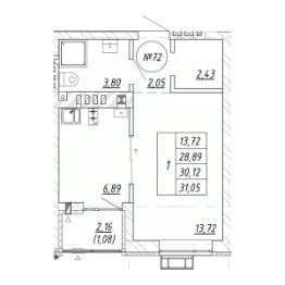 Продаётся 1-комнатная квартира в строящемся доме (Дом 24.1), срок сдачи: I-кв. 2029, общей площадью 31.05 кв.м., на 4 этаже. Новый жилой комплекс "Яркий" от застройщика "СтройИнвестиция" расположен по адресу: Калининградская обл., г. Зеленоградск, ул. Центральная улица.