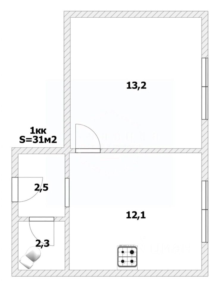 Общая площадь - 31.00 кв.м