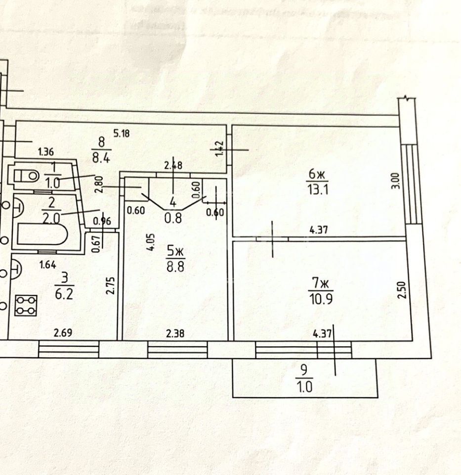 - Общая площадь 51,2 кв.м