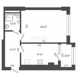 Расположена на 8-м видовом этаже 10-ти этажного современного монолитно-кирпичного дома 2014 года постройки.