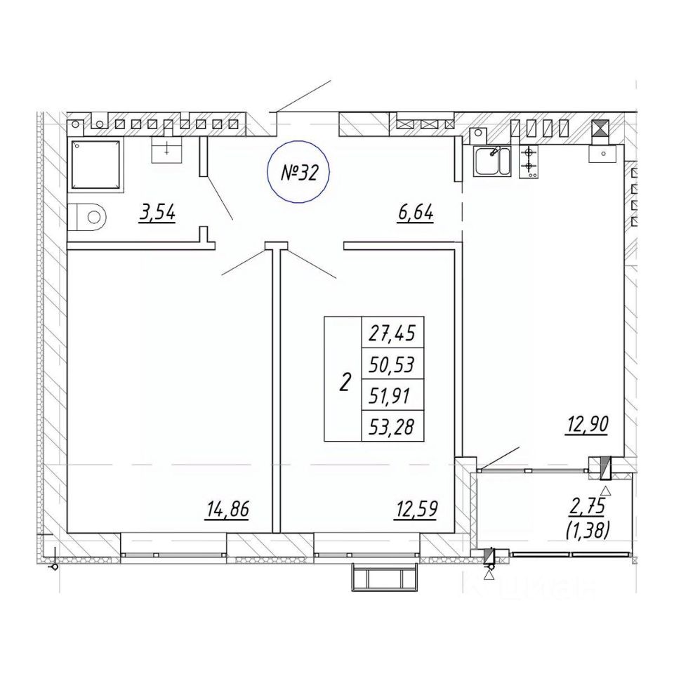 Продается 2-комн. квартира, 51,91 м²