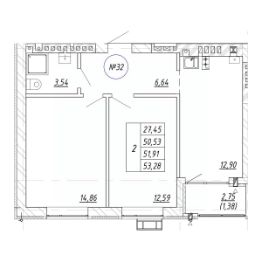 Общая площадь51,91 м²