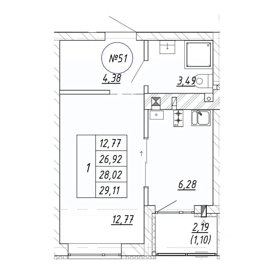 Продается 1-комн. квартира, 28,02 м²