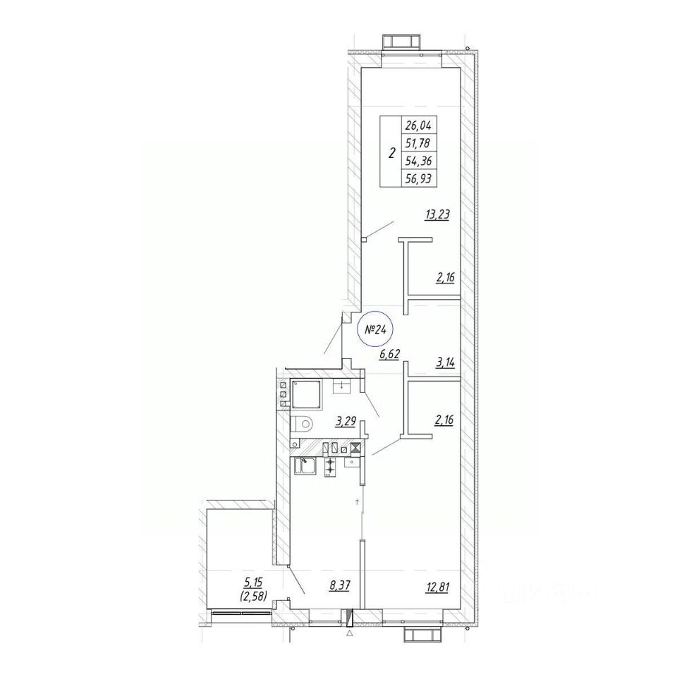 Общая площадь54,36 м²