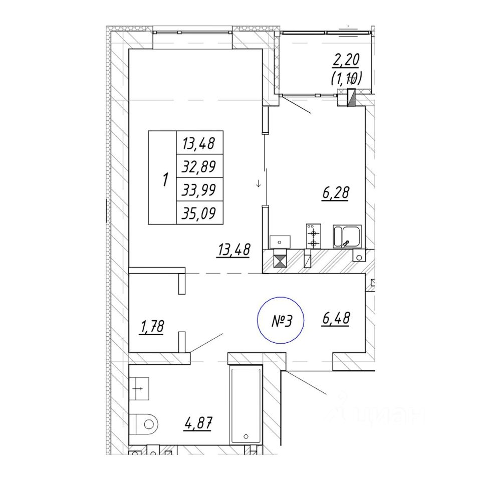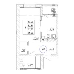 Общая площадь33,99 м²