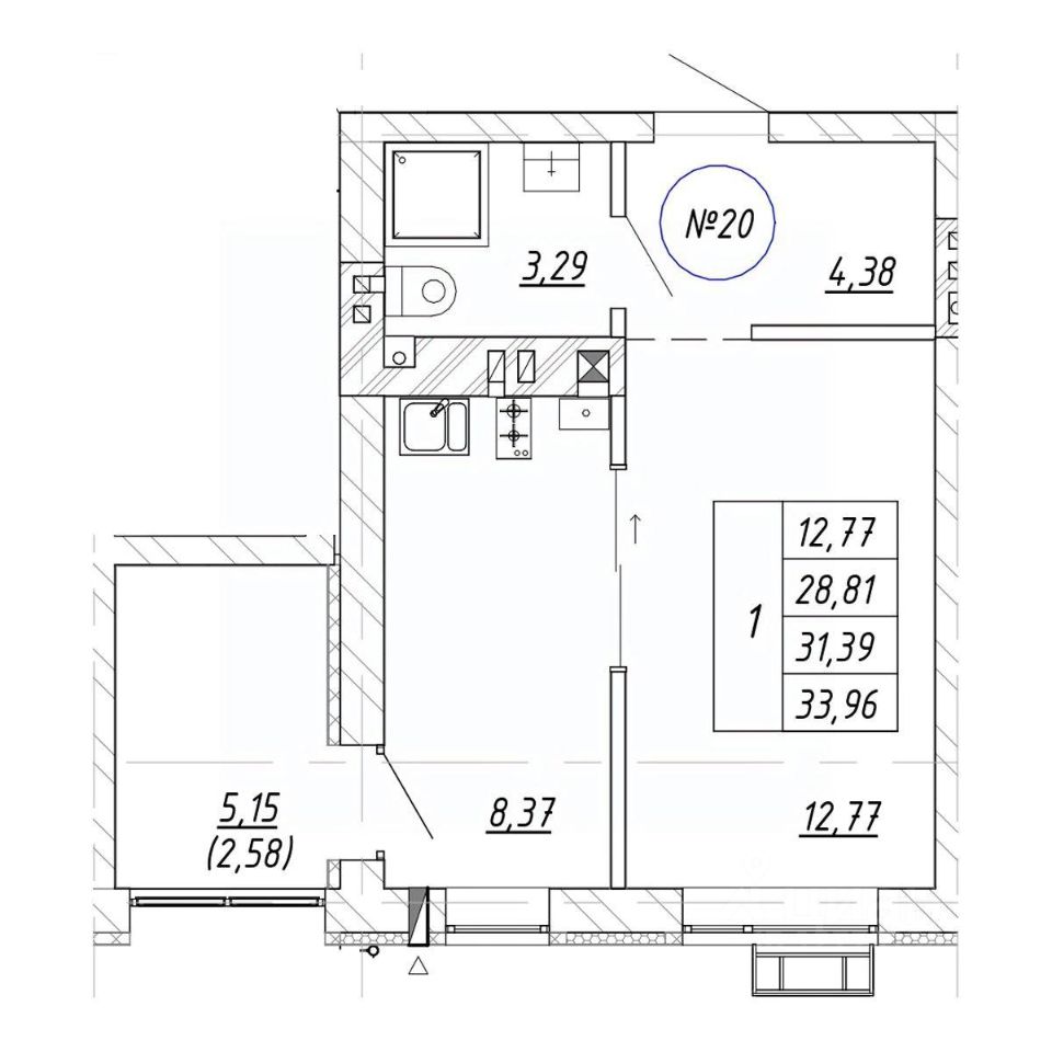 Продается 1-комн. квартира, 31,39 м²