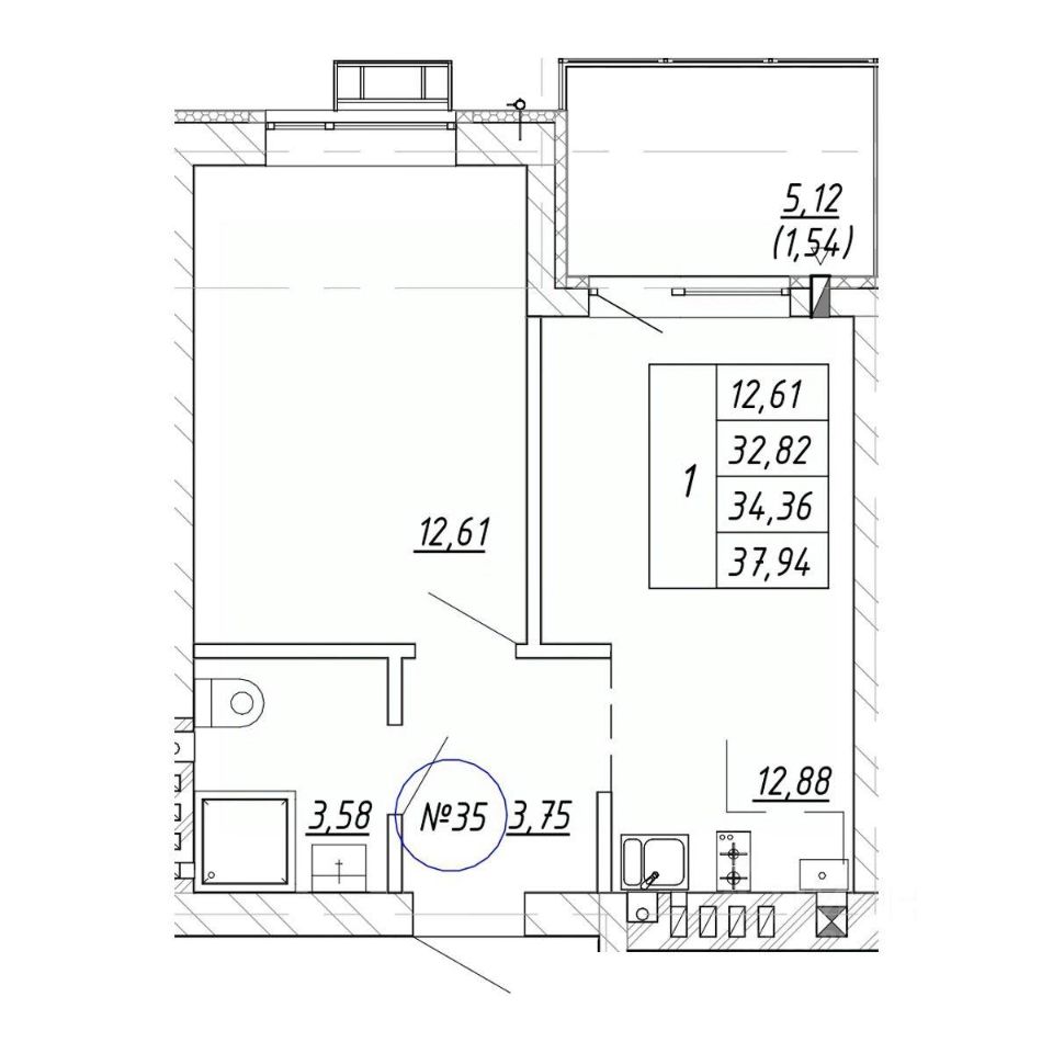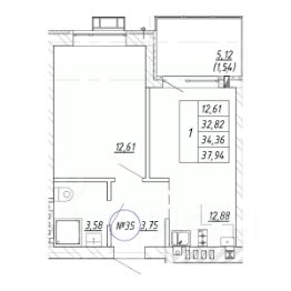 Продается 1-комн. квартира, 34,36 м²