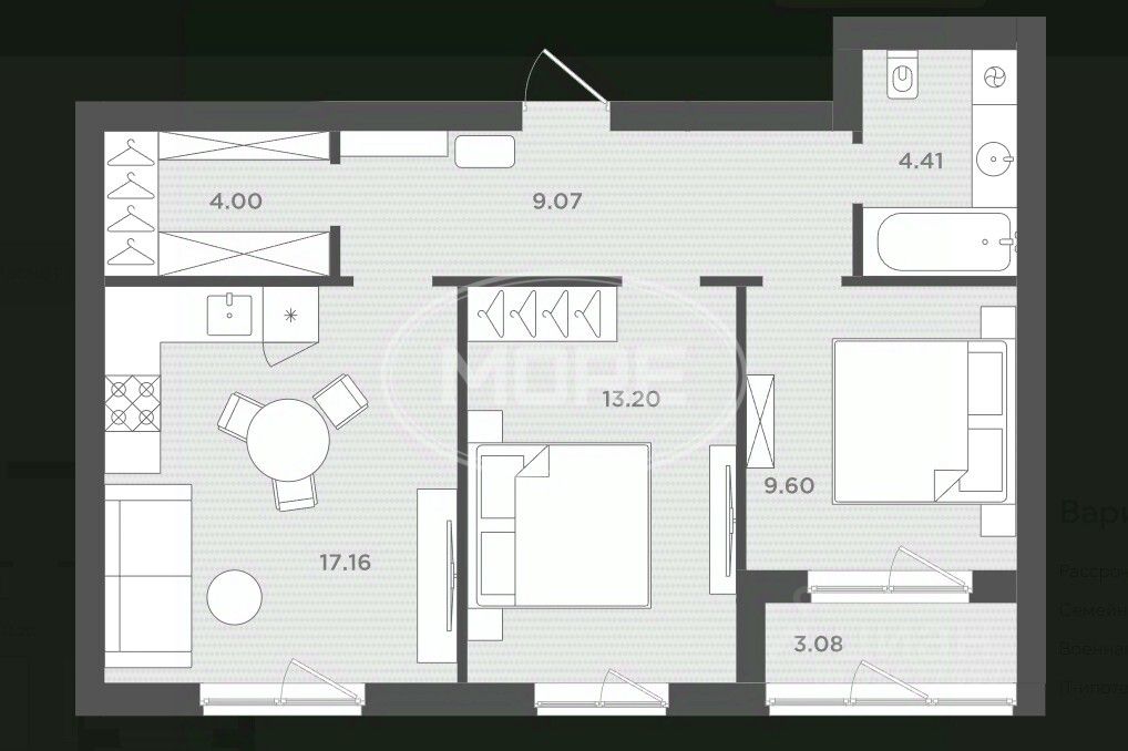 Общая площадь 60м2