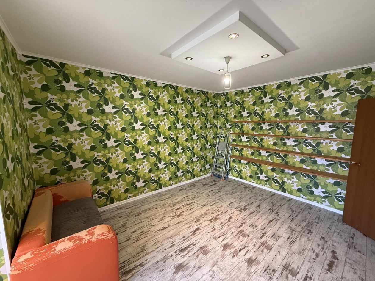 Остается вся мебель и техника (стиральная машина, кухонная гарнитура, диван).