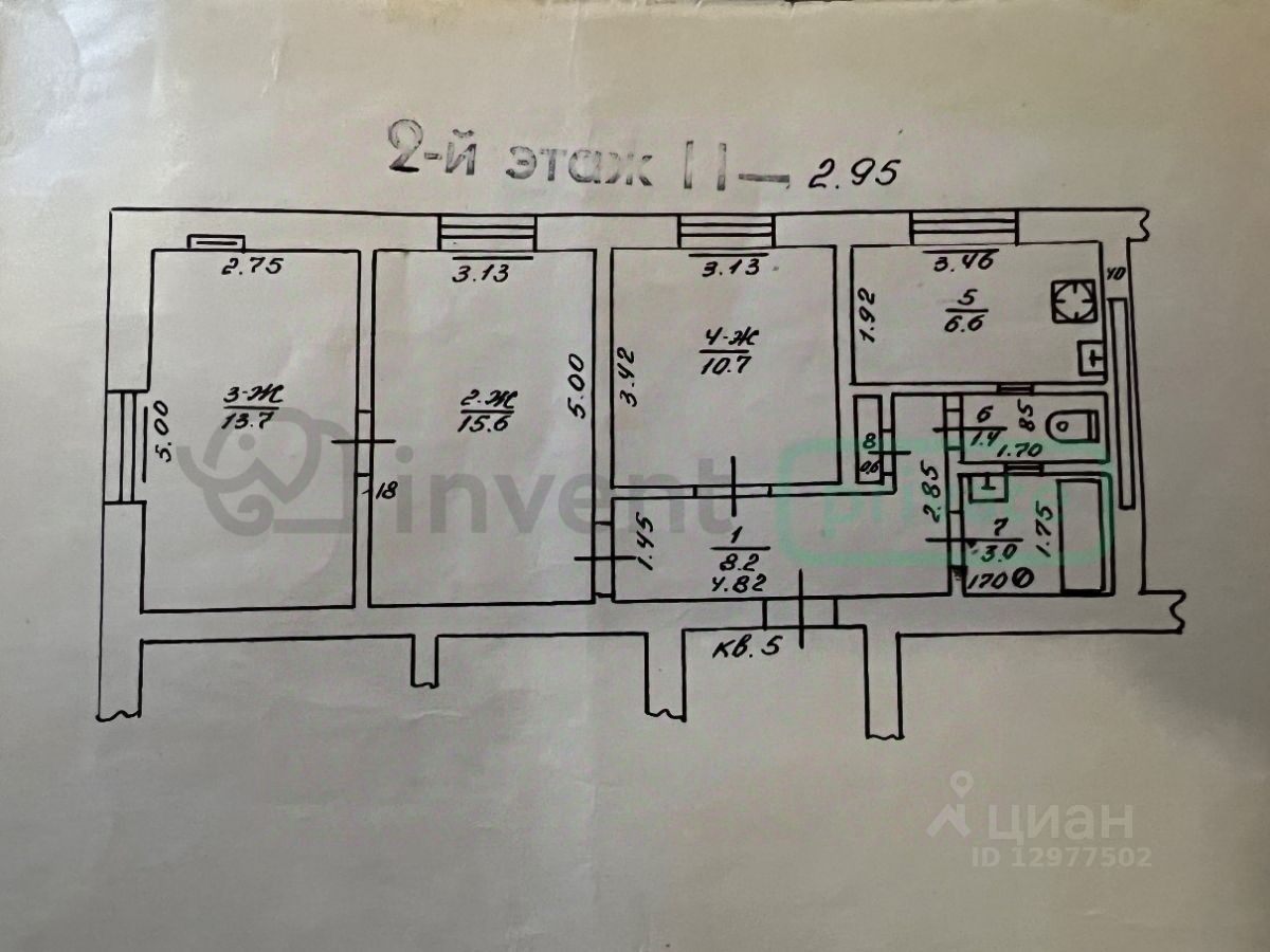 Квартира общей площадью 59,2 кв.м. расположена на втором этаже трехэтажного кирпичного дома 1961 года постройки. Требует ремонта. Центральное отопление. К каждой квартире есть дополнительно подвальное помещение.