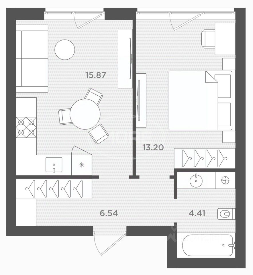 Квартира полностью укомплектована всем необходимым. Вам не нужно ждать окончания ремонта — выбирайте свою планировку и празднуйте новоселье сразу после сделки!