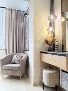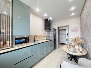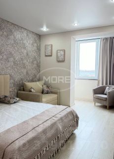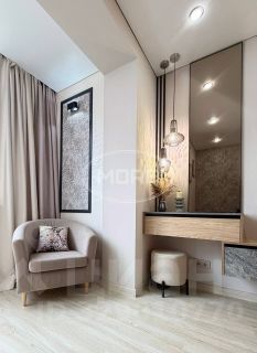 В коридоре большие шкафы для хранения с зеркалами от пола до потолка, на кухне мебель высокого качества, необходимая техника. Подоконник широкий - это отдельное место для завтраков или полноценное рабочее место! В спальне - удобная кровать с подъемным механизмом, раскладной диван, место для отдыха на застекленной лоджии и туалетный столик. Ванная комната выполнена в интересном цветовом решении, из фактурных качественных материалов.