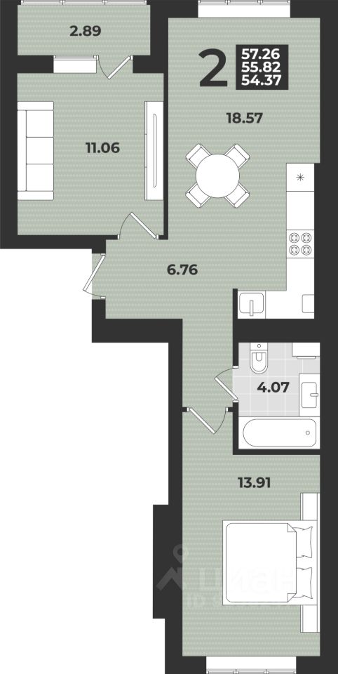 57,26 м²