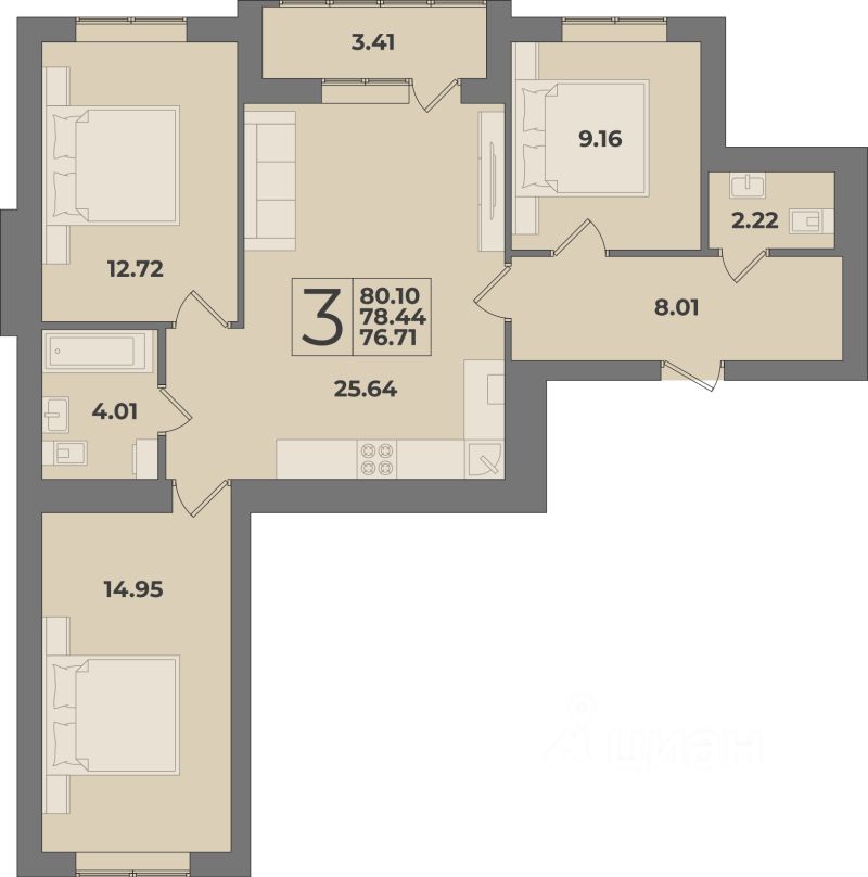 Продаётся 3-комнатная квартира в сданном доме (Дом 3 (1 этап)), срок сдачи: IV-кв. 2025, общей площадью 80.1 кв.м., на 2 этаже. Новый жилой комплекс "Суздальский-3" от Группы компаний "Модуль-Стройград" расположен в Ленинградском районе Калининграда на улице Суздальской.