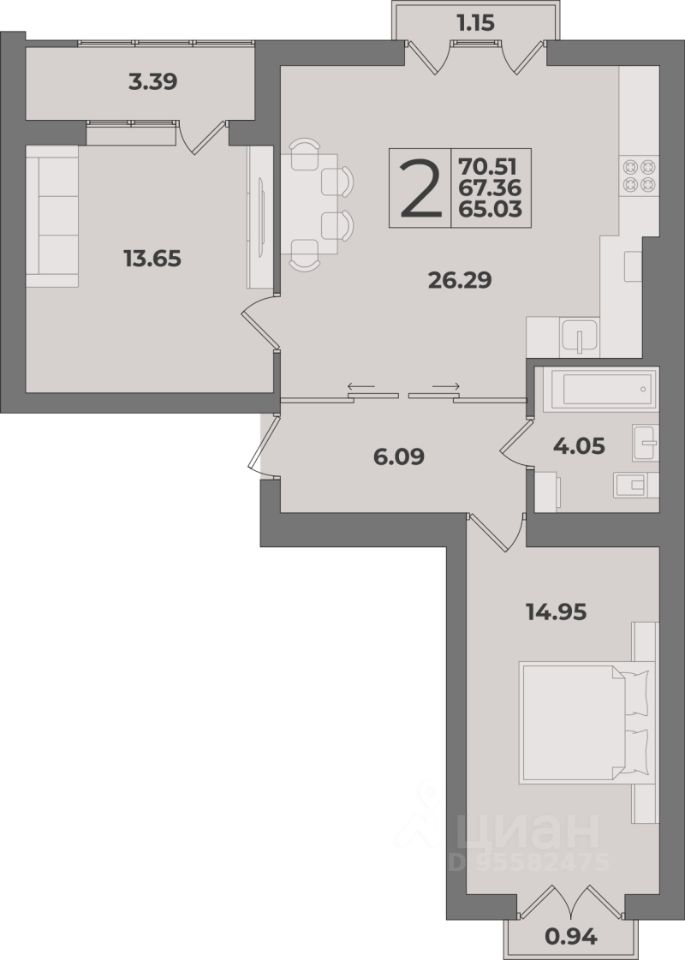 Продаётся 2-комнатная квартира в сданном доме (Дом 3 (1 этап)), срок сдачи: IV-кв. 2025, общей площадью 70.51 кв.м., на 9 этаже. Новый жилой комплекс "Суздальский-3" от Группы компаний "Модуль-Стройград" расположен в Ленинградском районе Калининграда на улице Суздальской.