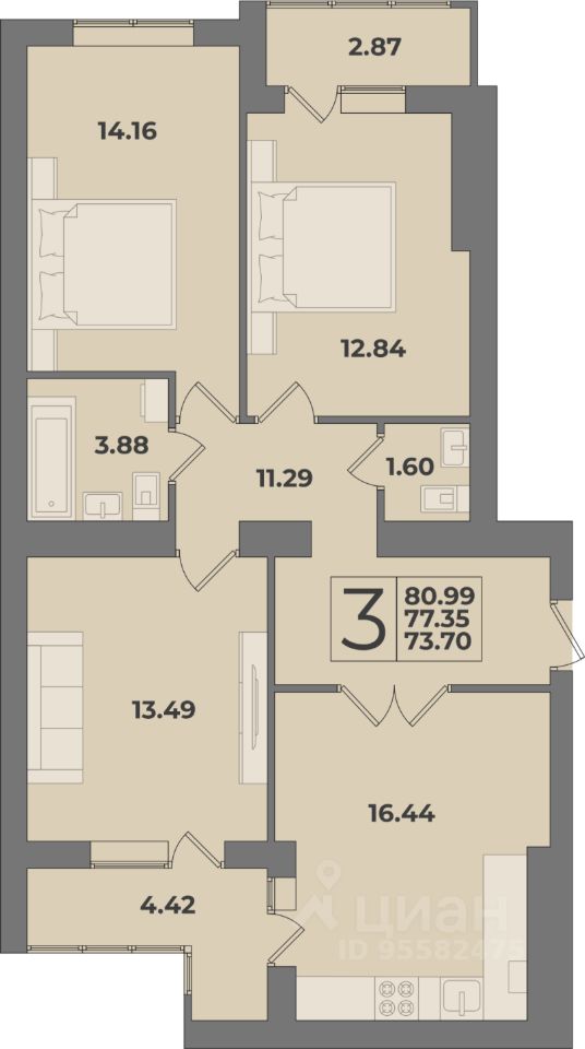 Продаётся 3-комнатная квартира в сданном доме (Дом 3 (1 этап)), срок сдачи: IV-кв. 2025, общей площадью 80.99 кв.м., на 3 этаже. Новый жилой комплекс "Суздальский-3" от Группы компаний "Модуль-Стройград" расположен в Ленинградском районе Калининграда на улице Суздальской.