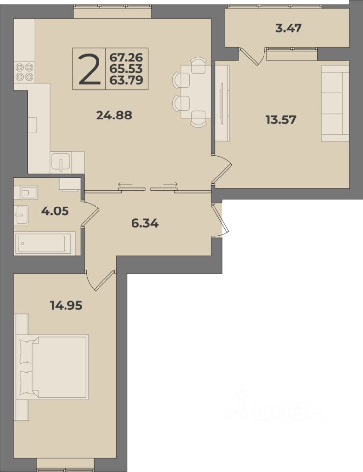 Продаётся 2-комнатная квартира в сданном доме (Дом 3 (1 этап)), срок сдачи: IV-кв. 2025, общей площадью 67.26 кв.м., на 2 этаже. Новый жилой комплекс "Суздальский-3" от Группы компаний "Модуль-Стройград" расположен в Ленинградском районе Калининграда на улице Суздальской.
