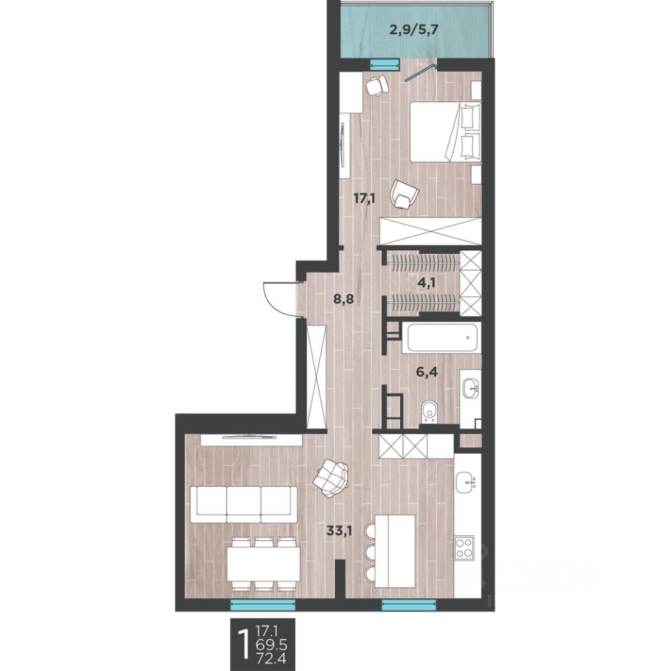 Продаётся 1-комнатная квартира в сданном доме (3-я Большая Окружная, 243 (1 этап)), срок сдачи: IV-кв. 2022, общей площадью 72.4 кв.м., на 2 этаже. Образ трёх китов, на которых держится земля, со временем всё чаще используется как символ опоры и нерушимости. Такое название для жилого комплекса нового поколения от концерна "КСК" выбрано неслучайно. Три принципа работы "КСК": инновации + поддержка жильцов + строительство без кредитных средств.