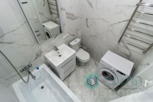 Ванная комната -3,7 м2. Отремонтирована качественной керамической плиткой в приятном светлом оттенке, который никогда не надоест.