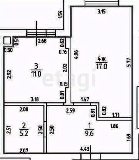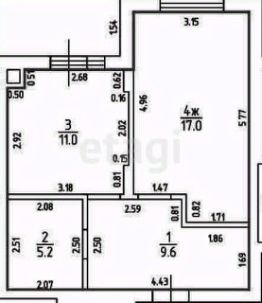 Полноценная однокомнатная квартира с просторной кухней, большой комнатой, ванной и прихожей.
