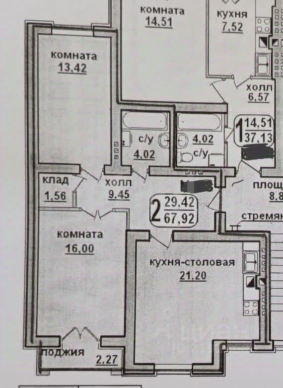 Две комнаты - 16 кв.м. и 13,42 кв.м.