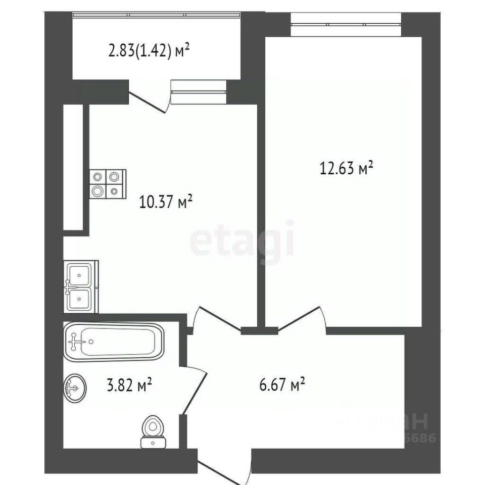 12,6 м²