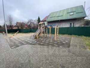 Безопасная детская площадка во дворе — дети играют под присмотром.