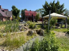 • Декоративный пруд, растут деревья и цветы.