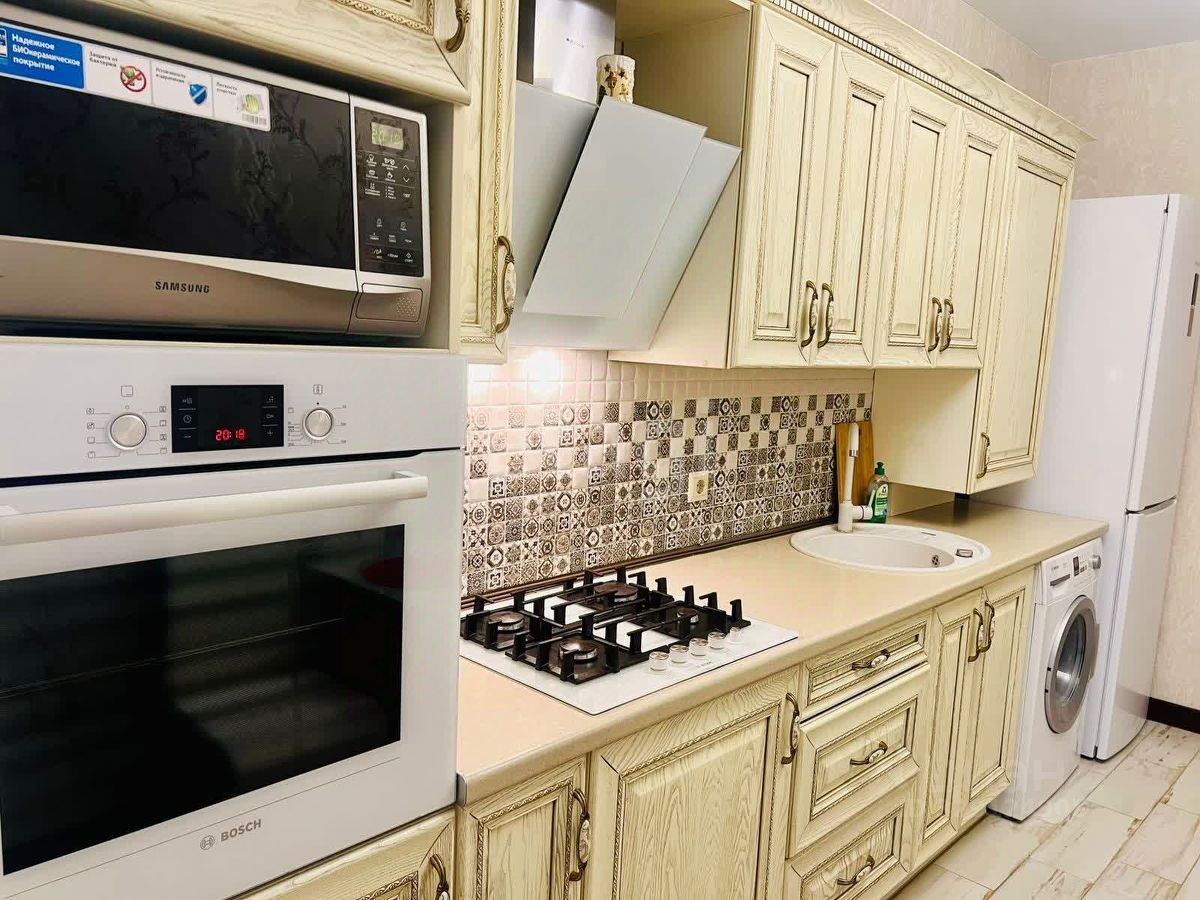 * Просторная кухня станет вашим любимым местом для кулинарных экспериментов! Входит в стоимость: современный кухонный гарнитур, встраиваемый холодильник, варочная панель и духовой шкаф.