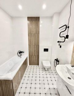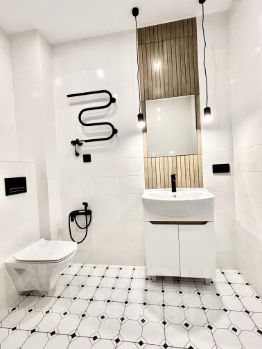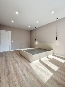 В квартире сделан хороший ремонт,санузел совмещенный, большой,оформлен в современном стиле с качественной сантехникой. Квартира частично оборудована техникой и мебелью (две двуспальные кровати, большой шкаф-купе, стол со стульями,тюль,портьеры. Все новое,на гарантии.