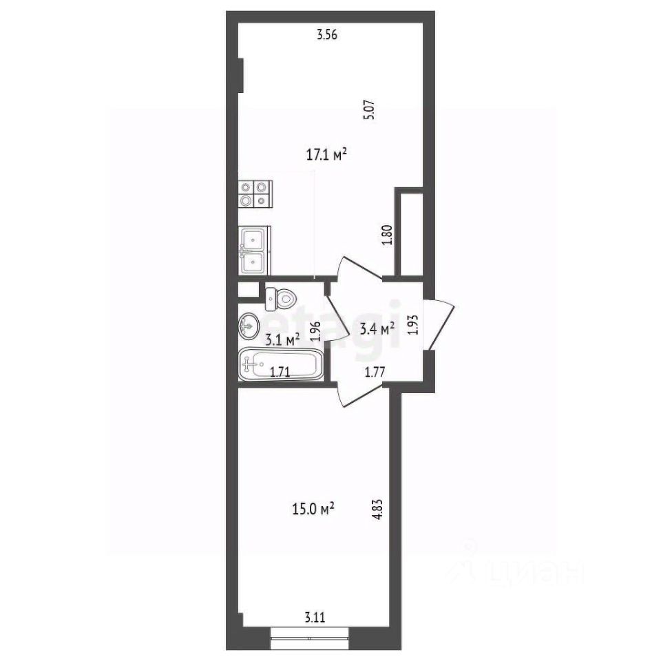 Вашему вниманию предлагается светлая евродвушка с автономным отоплением и двухконтурным газовым котлом. Удобная двусторонняя планировка включает просторную кухню-гостиную с панорамными окнами площадью 17 м² и отдельную спальню площадью 15 м².