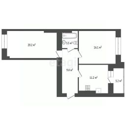 Просторная прихожая 9,4 кв.м., две изолированные комнаты 20,2 и 16,1 кв.м., кухня 11,2 кв.м., застекленная лоджия 3,2 кв.м., санузел 3,5 кв.м. В квартире сделан современный, качественный ремонт. Санузел совмещенный, стиральная машина. Система теплых полов на кухне. В квартире остается вся мебель и техника. Все под покраску, потолок не натяжной. Дом расположен внутри двора, нет морских ветров, удобный 2 этаж и месторасположение квартиры.