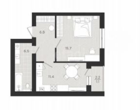 Общая площадь квартиры 43,3.м. (Площадь указана общая с лоджией без понижающего коэффициента), расположена в современном жилом комплексе, рядом с парковой зоной рядом с благоустроенным озером Шанхайское, в соседнем доме расположены пункты выдачи ОZОN и WВ. Кухня 11,4 кв.м, лоджия 2,2 кв.м, комната: 15,7 кв.м, санузел - 6,5 кв.м (совмещенный), коридор 6,8 кв.м.