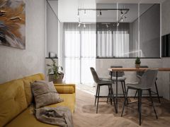 кухня-гостиная 12м2 с выходом на лоджию 14м2