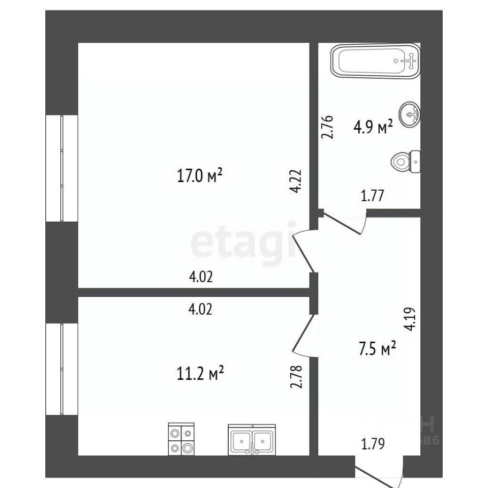 Общая площадь: 40,6 м²